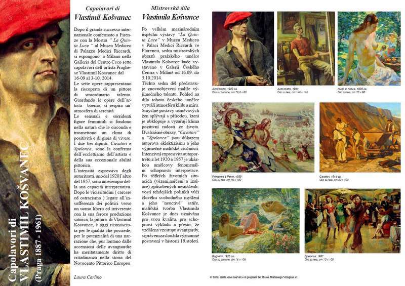 Dopo il grande successo internazionale confermato a Firenze con la Mostra “ La Quinta Luce “ al Museo Mediceo di Palazzo Medici Riccardi, si espongono a Milano nella Galleria del Centro Ceco sette capolavori dell’artista Praghese Vlastimil Kosvanec.